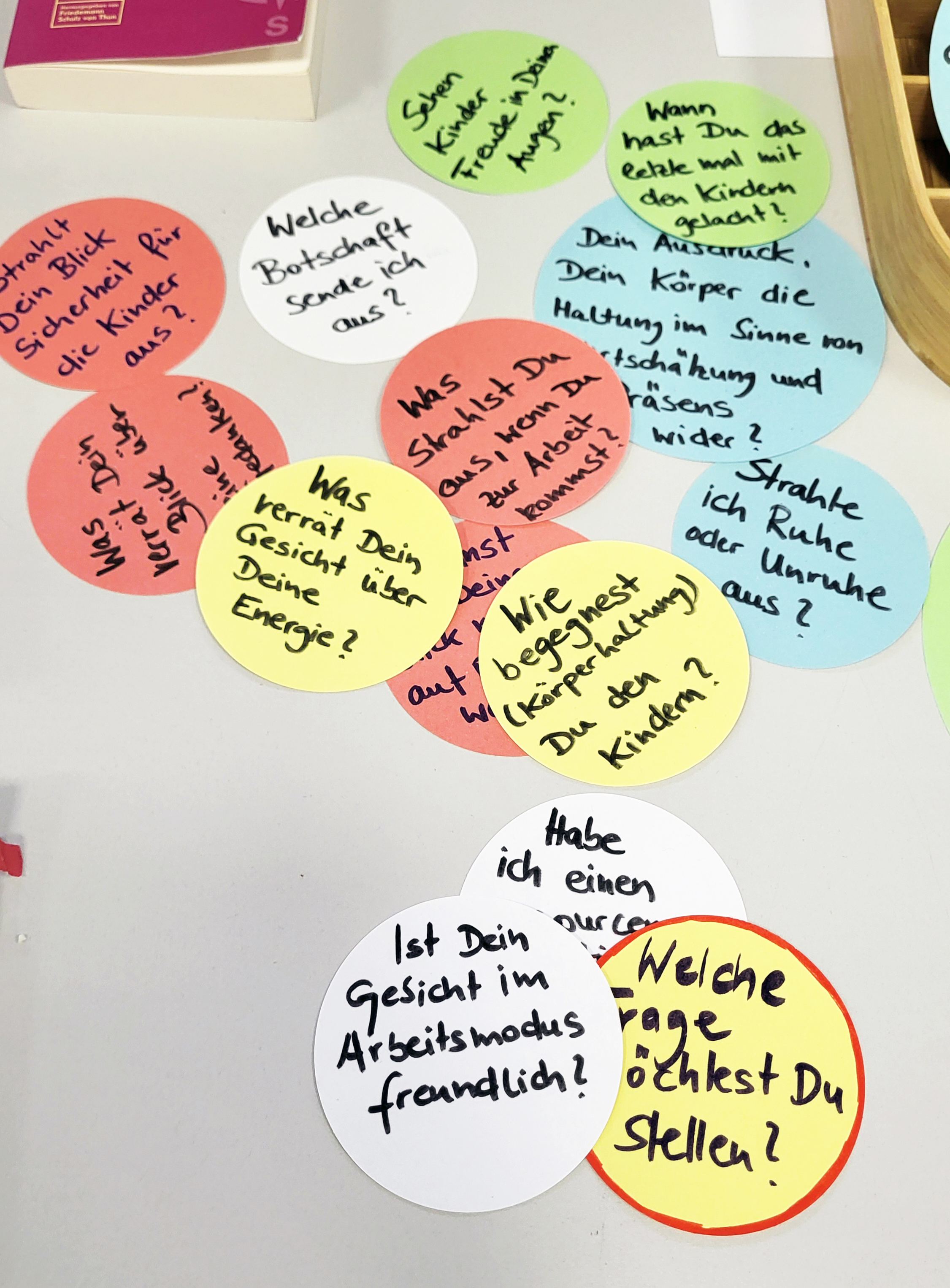 In zwei Workshop-Runden tauschten sich die Teilnehmenden praxisnah aus, teilten Erfahrungen und entwickelten gemeinsam neue Perspektiven. An den Thementischen luden Fachtexte, Buchtipps und Beispiele aus der Praxis zum Entdecken ein. Ein Highlight war der „Marktplatz der Ideen“ am Nachmittag: Hier wurden die vielfältigen Erkenntnisse sichtbar – kreativ, engagiert, lebendig. Ein Lerntagebuch begleitete die Teilnehmenden durch den Tag, regte zur Reflexion an: Was hat mich heute berührt? Was nehme ich mit in meine Kita? Genau darum ging es – nicht nur um Inhalte, sondern um Haltung, Verbindung und gegenseitige Stärkung.
